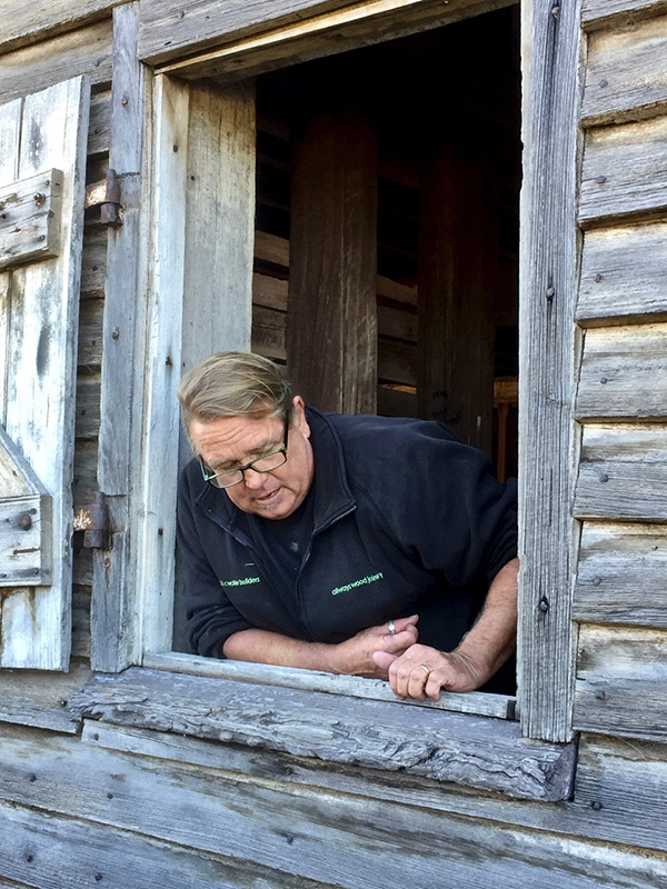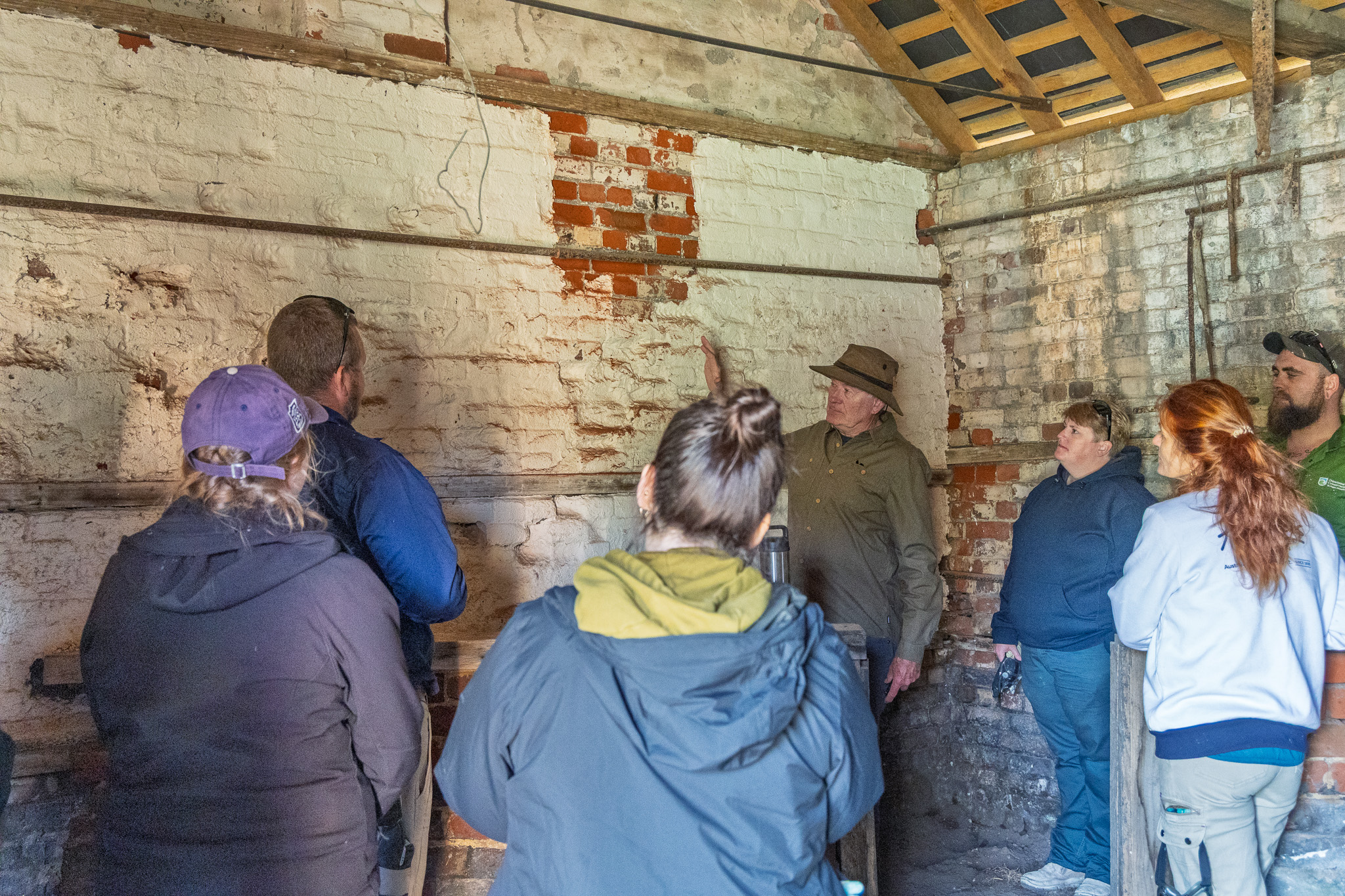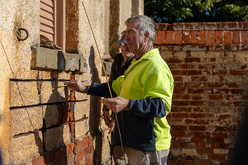 Gary Waller inspecting Woolmers woolshed sills