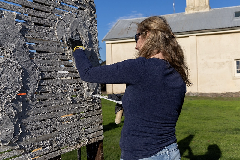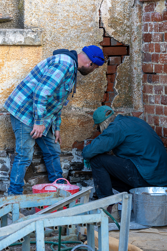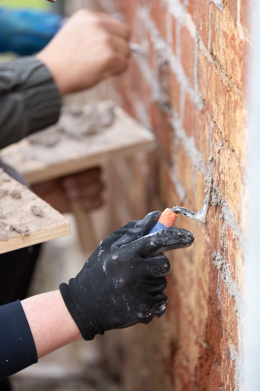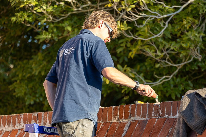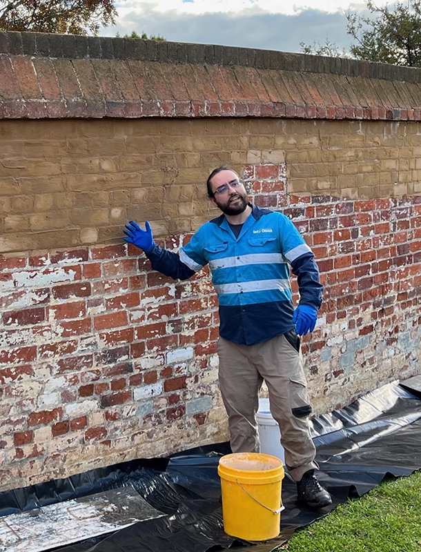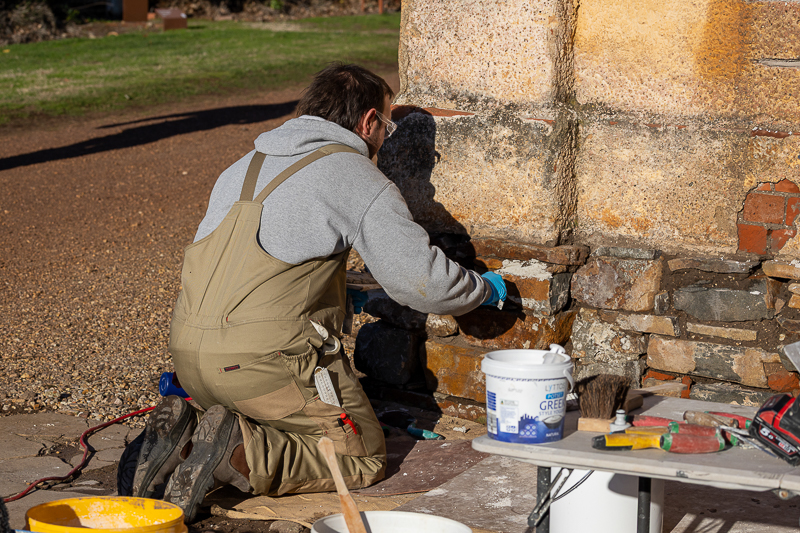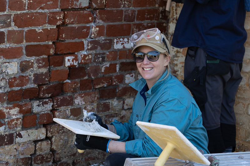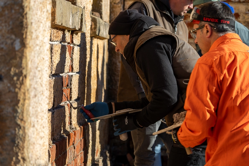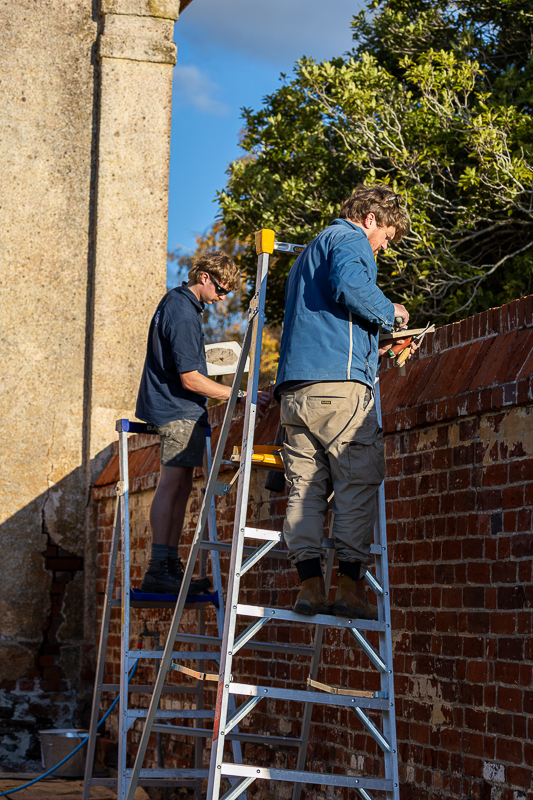 Participants working on masonry repairs at Woolmers Estate.