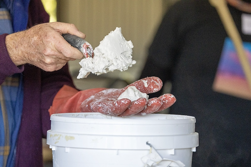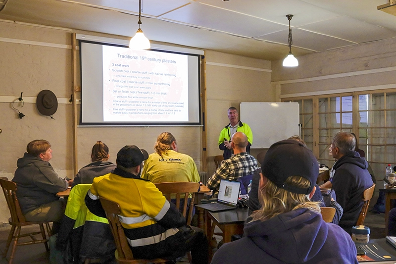 Ray Wiltshire explaining traditional plastering practice