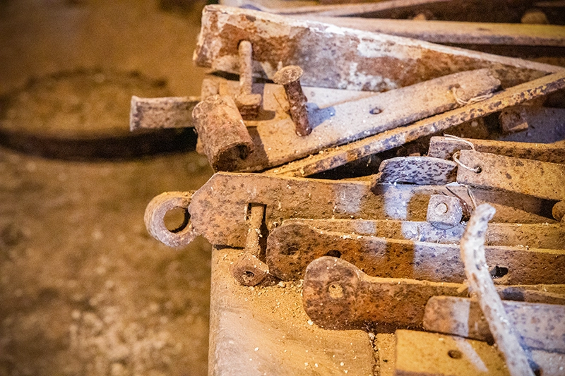 Historic metalwork in the blacksmith's shop at Woolmers